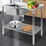 The lower base shelf is adjustable to suit your preferred height for storage of pots, pans and other cooking accessories and the entire unit is rust-resistant for durable, longlasting use. The stainless steel finish is simply impeccable and allows for easy maintenance and cleaning while the round edges ensure cuts and bruises are prevented in every possible way. Not least, the feet can adjustable to cater for uneven floors for a balanced working unit.
