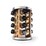 Rotating spice carousel with 16 individual glass spice storage jars Comes with dried basil, cinnamon, ground tumeric, ground cumin, garlic flakes, dried rosemary, curry powder, dried chives, cracked chilli, dried parsley, ground corriander, dried oregano, dried marjoram, Italian seasoing, dried thyme and sea salt Essential everyday spices for creating flavour-rich meals! Jars are designed with black lids labelled with each spice Stylish wood and stainless steel design looks great on any kitchen countertop Presented beautifully boxed and makes a fantastic gift for housewarmings, birthdays and other special occasions