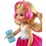 - Chelsea™ doll is ready to visit places near and far dressed in a white top, sparkly pink skirt, aqua-painted tights and pink boots.