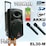Powerful, 2-way PA sound system with a built-in power amplifier in shock-proof ABS plastic housing with handle and wheels.