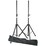 One pair of robust speaker stands with lockable height adjustment. These stands can support speakers up to 35 kilograms. They have the standard top-hat fitting in the speaker base, and feature aluminum construction, with locking pins on lanyards, rubber feet, and simple folding action for ease of use.