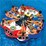 It's party time with the HUGE new island from WOW. This huge 12ft. diameter island is great for parties at the lake. Room for up to 10 people, this island was designed with 8 tubes around the diameter, 4 with mesh and 4 without for added play value. There is also a large mesh central deck for relaxing in as well. And for added convenience we have designed 2 Large BUILT-IN coolers for keeping your favourite beverages cold on a hot day. The island also comes with 8 recessed cup holders. Fun for the kids and adults, the colourful Red, White, and Blue graphic design will be sure to draw attention and get your party started. Made from 100% Heavy-Duty PVC material.
