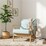 The Bismark Armchair, with its mint upholstery and natural oak pine wood construction, offers a stylish and inviting seat for any room. Designed for comfort, it is a versatile piece that enhances both functionality and aesthetics, making it perfect for use as a reading chair, vanity chair, or accent piece.