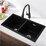 ACA Black Kitchen Sink 83.5x49CM Granite Quartz Stone Double Bowls Top/Undermount with Overflow