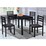 Create the perfect dining experience in your home or restaurant with this rustic style Vee 5Pc Dining set. Clean lines and angles, large flat surfaces, and tall slatted seating come together to create this eye-catching, dark wood dining set that includes a solid table and four high back, slatted chairs.