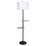 METAL FLOOR LAMP SHADE WITH BLACK POST IN ROUND WOOD SHELVES