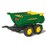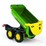 The John Deere halfpipe trailer features a twin-axle for extra stability, lever to tip the trailer, hitch for attaching to pedal tractors, John Deere decals and opening tailgate.