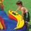 - Including water slide, wading pool, water sprayer, ring toss game (with four inflatable rings), ball roller game and toss ball game