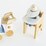 A delightful nursery set that includes a poseable wooden baby, a buggy, a high chair and all accessories as pictured.
