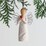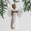 Angel in cream dress with wire wings, holding large shiny red apple in her hands. Hook and loop affixed to figure's head
