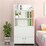 This modern computer desk will be your optimal choice if you want to have an organised and multifunctional work or study environment. The streamlined design pairs with a chic white finish, making it easy to blend with contemporary and traditional interior alike. The solid wooden frame boasts a foldable desktop, three-tier storage shelf and two-door cabinet. You'll have roomy space to stow your textbooks, magazines and other essentials. By folding the desk downward, it can be easily transformed into a freestanding cabinet.