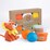 The dough is made of wheat flour with added edible pigment ( no chemical dye) and added natural essential oil extracts which gives it a lovely fragrance. This dough is Natural and 100% safe for your child to use. Tiny hands and fingers can press, roll and squeeze enhancing their fine motor skills. It is a no mess toy, clearning is a breeze, just need to put the doughs back in the container.