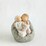 This piece features a figure of a toddler holding an infant, cuddled together in a beanbag. The toddler is wearing a blush pink onesie, the baby is wrapped in a cream colour blanket with a matching hat.