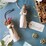 This piece features a figure in a cream dress, holding a large bouquet of blue forget-me-not flowers up to her face. Hook and loop affixed to figure's head.