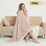 From the bed to the couch to casually hanging out at home, this wearable blanket features decorative puff balls, two small pockets.