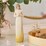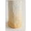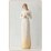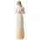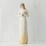 This piece features a standing figure in a cream dress with an elongated torso, holding a candleholder with a gold-leaf candle in her hands. The skirt of the figure is embellished with gold paint and gold-leaf dots.