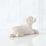 This piece features a figure of a small white dog, lying down, such as a Poodle, Bichon Frise, Pomeranian or mixed breed.
