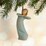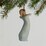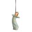 This hanging ornament features a figure in a blue dress, with her arms raised up to her face as if dancing.