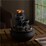 Cascading water fountain with a faux stone finish and LED light in the top tier