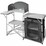 This foldable camping kitchen unit features a stove area with windshield, a large working surface and a 2-shelf cupboard. It is perfect for outdoor use. It has a large work surface and a big cupboard so that you can have everything you need within reach. You can also place your ingredients or kitchen ware on the shelf under the stove area.
