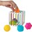 - 6 chunky, uniquely textured shapes fit through the elastic bands of the cube