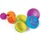 Each colorful ball is uniquely textured with fascinating dots, lines, and swirls. Meanwhile, short, safe tethers keep them all connected in a wonderfully wobbly row.