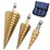 - 3 sided shanks design in order to prevent slippage when in chuck- Two flute design drives faster, smoother and cleaner cuts each step is clearly labeled with the depth diameter in steps