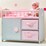 AMPLE STORAGE: Features built-in cabinet, 2 pink fabric bins, and shelf space under the cot. Ideal for storing baby doll accessories, clothes, and toys.