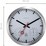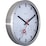 This wall clock has a brushed aluminium case that frames the white dial. The black markings and bold black and red hands make the time, temperature and humidity easy to read.