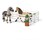 Contents: 2x girls, 1x Tennessee walking horse, 1x Lusitano, 1x puppy, 1x show arena, 2x spotlights, 3x scoreboards, 1x tent with sign and curtains, 1x hanging mirror, 1x standing mirror, 1x brush, 1x lipstick, 1x make-up brush, 1x make-up compact, 1x make-up kit, 1x jury table, 2x spiralling vines, 7x curved vines, 8x straight bows, 4x corner bows, 2x box tree ribbons, 6x decorative flowers, 6x decorative hearts, 6x decorations, 6x decorative roses, 6x decorative bows, 6x decorative horse heads, 1x bridle, 1x lead rope, 1x harness, 4x spats, 2x paddock gates with bolts, 3x paddocks, 1x bucket, 1x apple, 2x flags, 2x box tree planters, 1x table, 1x grooming box, 1x hay rack, 1x purple rosette, 1x turquoise rosette, 1x pink rosette, 1x chair, 1x hoof pick, 1x brush, 1x hose, 1x tap, 1x trophy, 1x curry comb, 1x skirt, 1x horse blanket, 1x felt carpet, 1x scoreboard barrow, 1x sticker sheet, 1x assembly instructions.