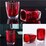 - Bathroom accessories set: 5 pieces of red bathroom accessories, including 1 x lotion dispenser, 2 x glasses, 1 x soap dish, 1 x toothbrush holder.