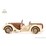 With a powerful rubber band motor, the car covers up to four meters in one winding. The winding key is designed to look like a spare wheel at the rear of the Roadster.