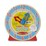 The detailed clock face has large red numbers to match the hour hand, small blue numbers to match the minute hand, and a segmented color disk to help kids visualize "quarter past" and "half past."