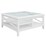 In white, this versatile coffee table is a lovely piece of furniture. It is a unique coffee table with plenty of storage space in the form of open shelves. It features 5mm tempered glass on the tabletop andcross design on both sides, that enhance its beauty. The beautiful white table is designed in the Hampton style. It has tapered legs. The table is made of high-quality Solid Acacia Wood and MDF, obtained in a sustainable manner. The wood makes the table surface silky smooth, super strong, and also resistant to moisture and extreme temperatures. A one-year warranty is included with the fully assembled coffee table.