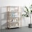 With five levels, including the top shelf, the white shelves are elegantly paired with oak woodgrain post legs.