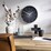 This wall clock features an aluminium case that frames a black dial. The glass lens protects the dial from damage and dust.
