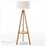 Natural Wooden Tripod Floor Lamp w/ Round Wood Shelf + Off White Linen Shade