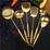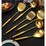 GOLD COOKING UTESILS SET - 7 piece stainless steel kitchen utensil set includes a strainer skimmer spoon,slotted spatula,serving spoon,soup ladle,wok spatula,spaghetti spoon and rotating utensil holder.