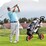 Costway Foldable Pro 3 Wheel Golf Buggy Adjustable Golf Push Cart Trolley w/Seat & Extra Storage,Red