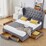 Design Square Modern Fabric Bed Frame W/ 4-Drawers Storage Double Size - Dark Grey