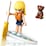 - Accessory elements include a toy bike, helmet, paddleboard, paddle, life vest, tennis racket, water bottle, bone, marshmallow on a stick and a toy camp fire.