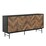 The realistic woodgrain tones, along with the chevron pattern and the black carcass and legs, combine to bring an elegant industrial style into any space.