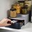 Compact tiered cupboard organiser with drawer