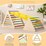 Our 3-in-1 climbing triangle ladder with a ramp can bring endless fun for your little ones while developing their motor skills, balance and courage! This little one playground consists of 1 big triangle ladder, 1 small triangle ladder and 1 ramp. The 3 pieces of this climbing toy set can be used in different combinations to offer more fun to your little ones. As for quality, made of natural solid wood and supported by a triangle structure, the climbing ladder is very stable, durable and won't easily topple over. Thanks to the round corners, smooth edges and little one-friendly paint, little ones will have a safe play on this climbing toy set. What's more, you can tuck the small triangle ladder into the big one to easily store and save space.