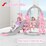 Advwin 4 in 1 Kids Slide Swing Set Toddler Indoor Outdoor Playground with Basketball Hoop Pink