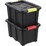 2 x 25L Heavy Duty Storage Box Black Crate Container Plastic Bins Organiser Tub