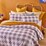 Fully reversible coverlet set for all-season comfort Timeless gingham print in a vibrant lilac colourway Outer fabric crafted from soft washed cotton Quilted filling for density, warmth, and padding Fits Queen/King size beds Set includes a comforter and two matching pillowcases Classic white reverse offers versatile styling