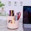 360 degree rotating multi-functional pen holder with 3 separate layer for office desk organiser (Pink)