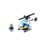 The build is made of 39 pieces. The skis are made of 1 x 6 Dark Stone Gray plates, with two 2 x 6 Dark Stone Gray plates stretching across the middle. Going vertically across those plates is a boat hull, and on top of that is a 3 x 4 angle in Cool Yellow with a 1 x 2 Cool Yellow plate on each side. There are two 1 x 2 Bright Blue roof tiles behind the pilot seat, a dashboard in front, two White 1 x 2 roof tiles sticking horizontally out, and a 2 x 2 Medium Stone Gray plate on the top. Behind that plate is a Medium Stone Gray mini handle and a Transparent Blue 1 x 2 plate on top of the Medium Stone Gray plate and a 2 x 3 White plate with bows behind that. On top of that is a 1 x 2 White plate with handles with a Transparent Light Blue cockpit sticking down. On top of the white plates is a propellor.