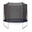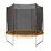 The outer net design provides a larger jump area inside the frame, which can be popular for smaller backyard installations.